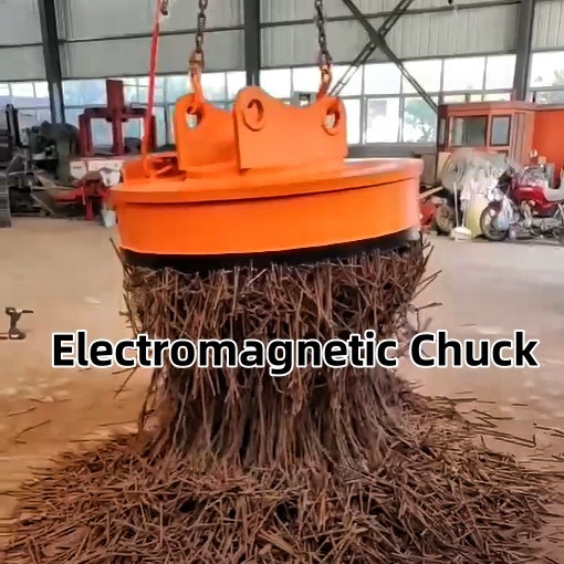 Electromagnetic chuck with various lifting machinery. The utility model can be widely used in the industries such as steel making plant, steel rolling mill, scrap steel processing plant, large casting workshop, shipbuilding factory, heavy machinery manufacturing plant, steel warehouse, port dock and station, etc. Used for loading and unloading magnetic materials.